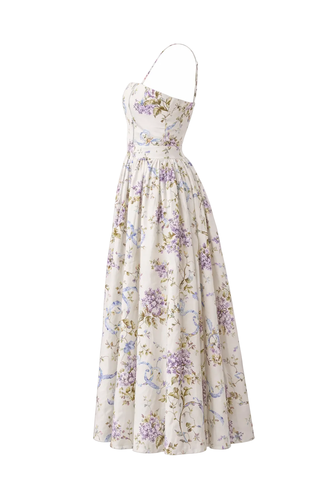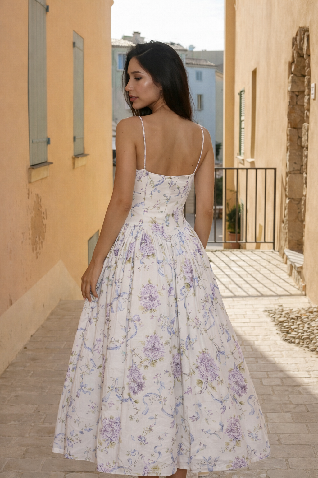 Son bustier structuré avec fermeture éclair souligne naturellement la taille et met en valeur la silhouette. Les bretelles fines type spaghetti apportent une touche légère et élégante, tandis que la jupe longue évasée crée un mouvement fluide et gracieux à chaque pas.